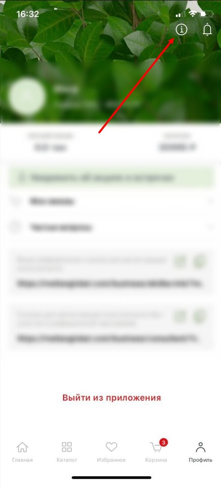 Если вы хотите удалить свой аккаунт в мобильном приложении MEITAN, зайдите в «Профиль» нажмите на иконку «i» в правом верхнем углу экрана.