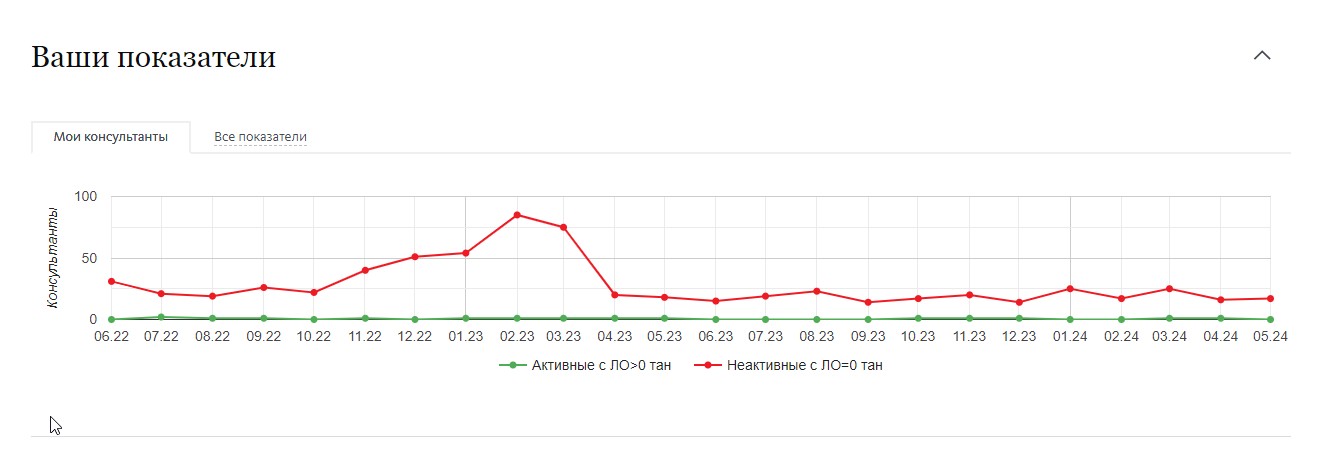 Блок, где можно увидеть показатели работы консультантов в твоей структуре, а также возможность перейти ко всем графикам.