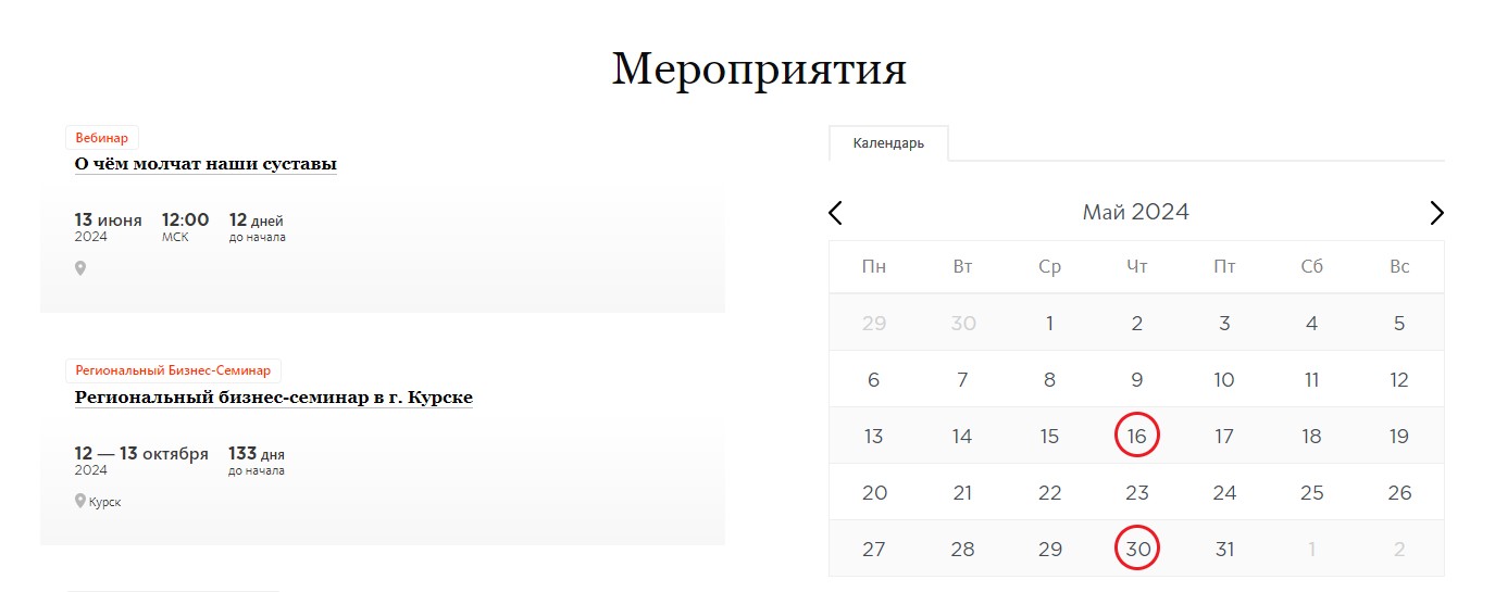 Календарь мероприятий