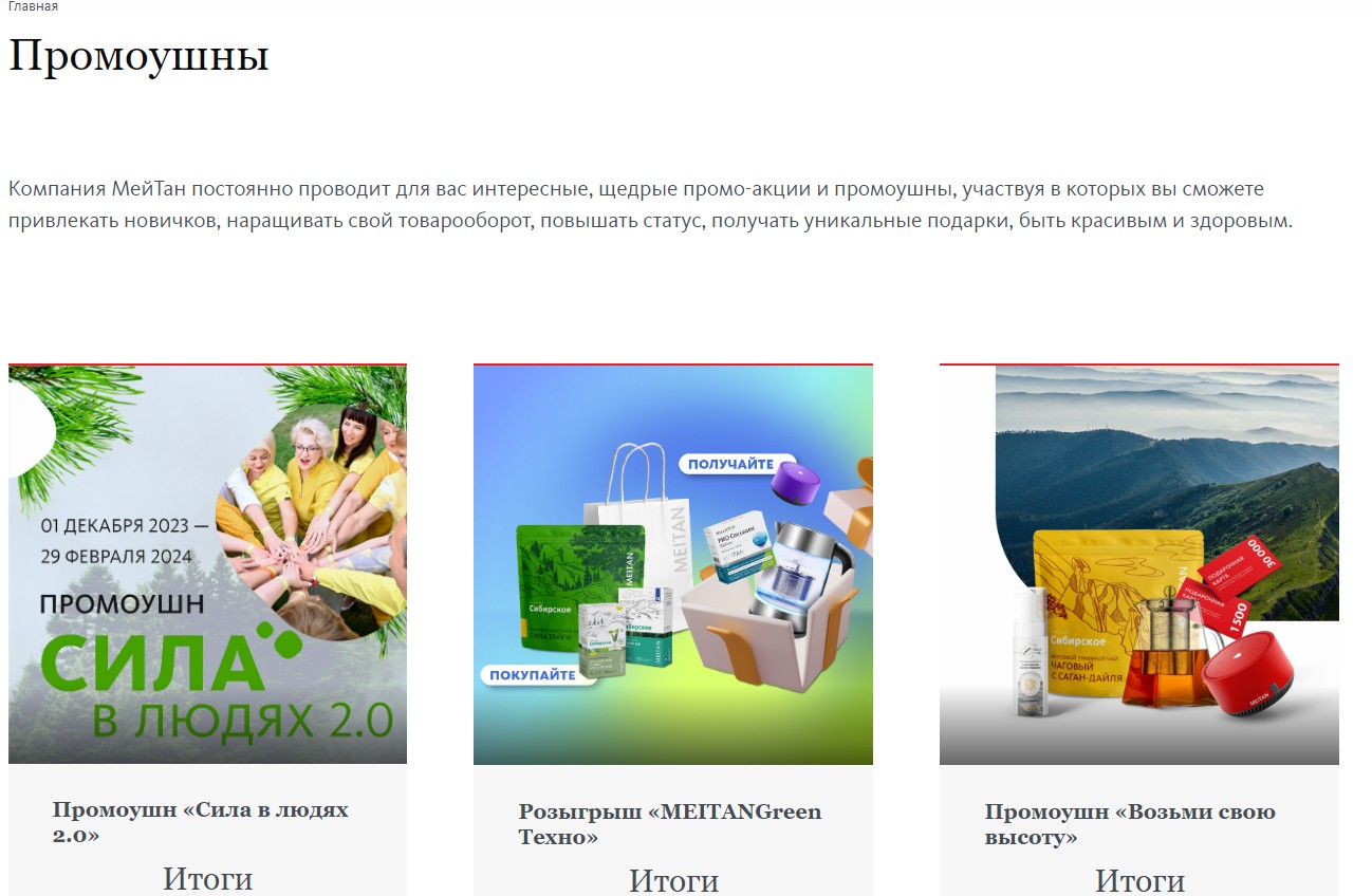 В разделе «Промоушны» расположена следующая информация: